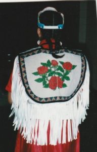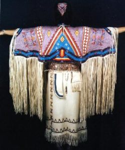 We provided the beadwork on all of the stars outfits and most of the props in the television movie “Crazy Horse.” We also dressed the stunt men, in fact, one of the bow cases for the stunt men had the design upside down because we had to make that bow case in about 12 hours from start to finish. We received a thank you letter from the production company even though we were not listed in the movie credits. We dressed Crazy Horse, Little Big Man, Sitting Bull, Crazy Horse’s wife, and two other main characters.