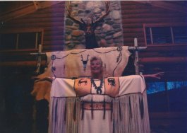 We provided the beadwork on all of the stars outfits and most of the props in the television movie “Crazy Horse.” We also dressed the stunt men, in fact, one of the bow cases for the stunt men had the design upside down because we had to make that bow case in about 12 hours from start to finish. We received a thank you letter from the production company even though we were not listed in the movie credits. We dressed Crazy Horse, Little Big Man, Sitting Bull, Crazy Horse’s wife, and two other main characters.